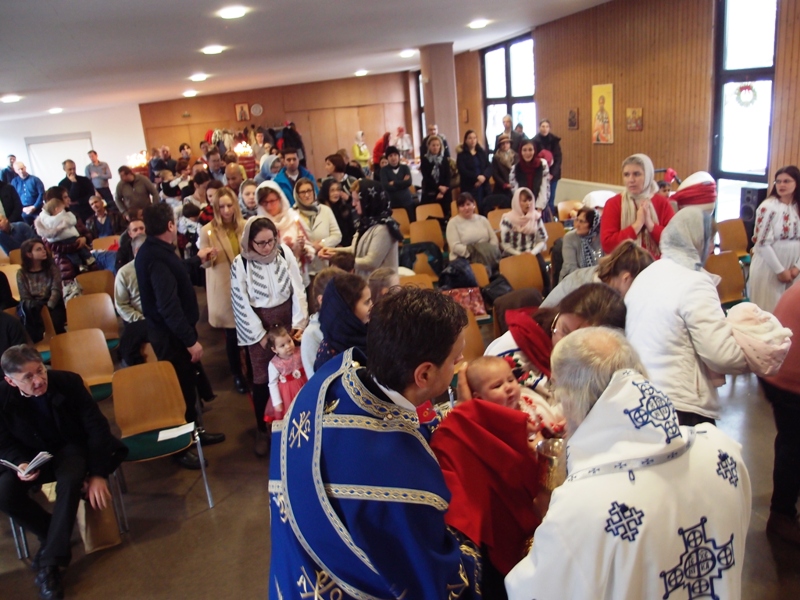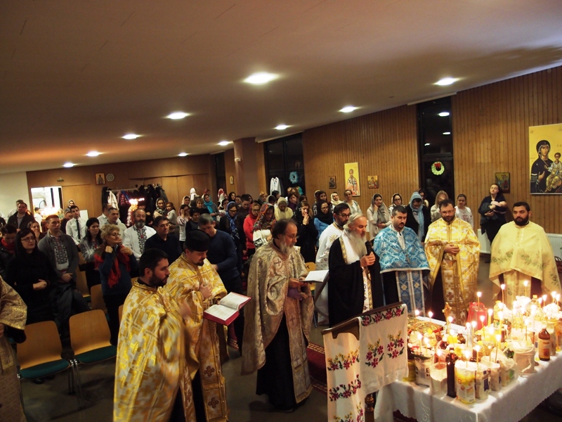 Sărbătorirea festivă a primului an de activitate a debutat sâmbătă cu împodobirea Bradului de Crăciun, cu decorațiuni special confecționate din materiale reciclate în cadrul Atelierului de decorațiuni al parohiei „Sf. Bartolomeu”. Începând cu orele 17, Înaltpreasfințitul Părinte Mitropolit Dr. Serafim Joantă a săvârșit Taina Sfântului Maslu, împreună cu un sobor de șapte preoți. După Taina Sfântului Maslu, Înaltpreasfinția Sa a întreținut o seară duhovnicească cu credincioșii și seara s-a încheiat cu un frumos recital de colinde susținut de Corul „Plugușorul” al Parohiei Ortodoxe Române Saarbrucken (dirijat de părintele Constantin Papuc), care a venit să fie alături la acest moment aniversar. Prezența credincioșilor la Taina Sfântului Maslu a fost numeroasă, printre participanți numărându-se mulți oaspeți veniți din alte parohii.